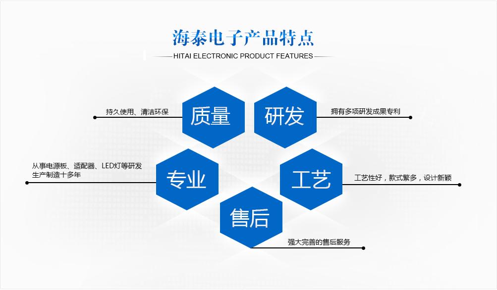 威海海泰電子有限公司成立于2003年(原威海雙豐通訊設(shè)備有限公司),是一家致力于開關(guān)電源、LED電源、電源適配器、手機(jī)充電器、醫(yī)療電源等自主研發(fā)、生產(chǎn)和銷售為一體的高新技術(shù)企業(yè)。公司秉承 “以顧客為中心”的宗旨,堅(jiān)持“以人為本、質(zhì)量至上 、節(jié)能降耗、清潔環(huán)保、持續(xù)改進(jìn) ”的質(zhì)量和環(huán)境方針,科學(xué)高效的組織生產(chǎn),不斷的提高產(chǎn)品質(zhì)量。先后通過了ISO9001質(zhì)量管理體系認(rèn)證、GJB9001C質(zhì)量管理體系和GJB3001C質(zhì)量管理體系和ISO14001環(huán)境管理體系認(rèn)證。